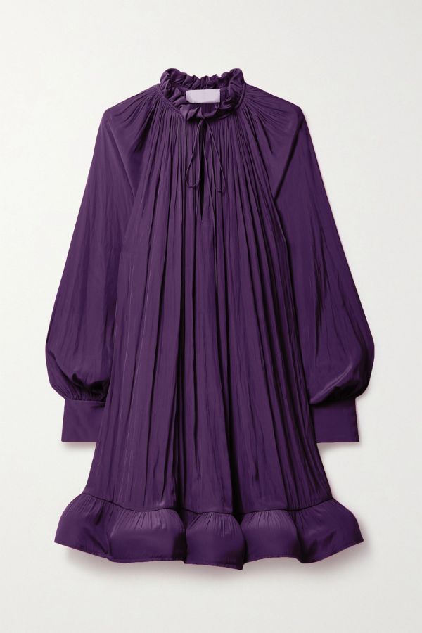 Purple Short Charmeuse Ruffle Dress